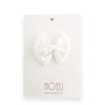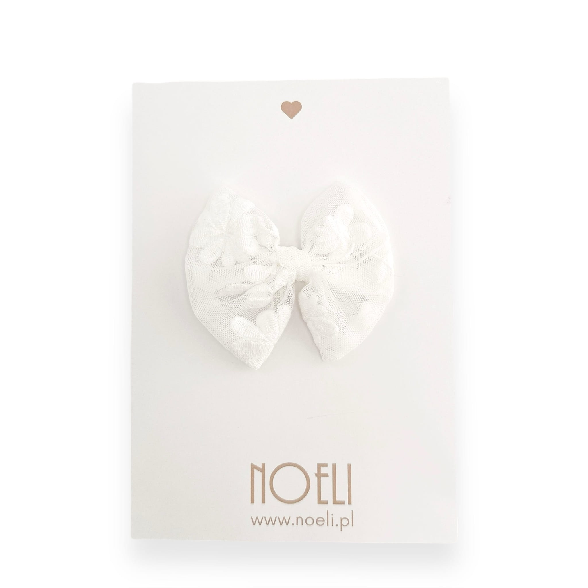 Kokarda z miękkiej koronki hafftu na tiulu ecru zamocowana na metalowej fryzjerskiej spince 5cm, rozmiar kokardy 10cm,